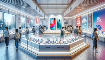 • 顧客は新しいスマホやタブレットの操作感を試したり、様々なアクセサリーを合わせてみたりすることができます。